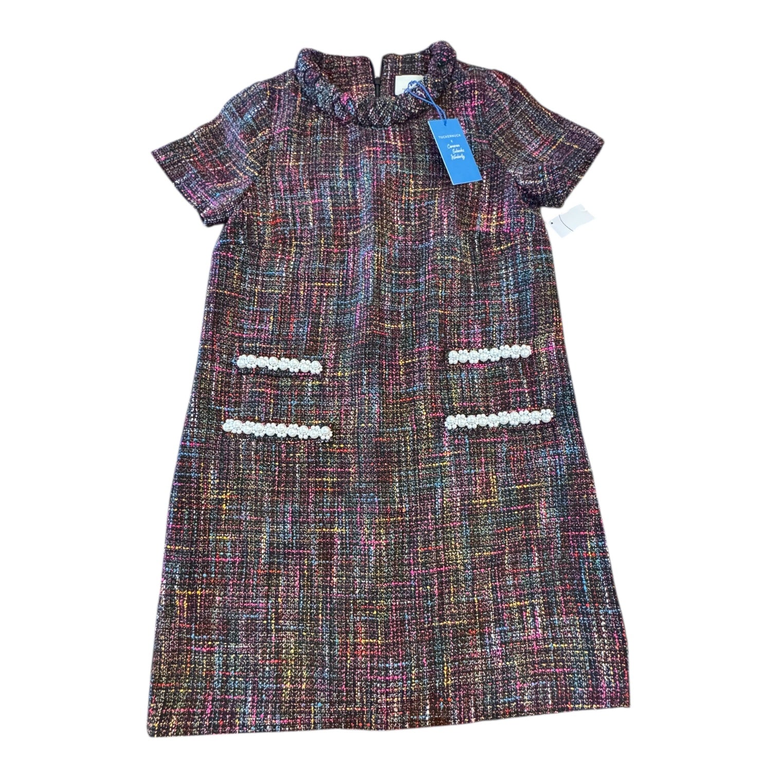 Chic Tuckernuck party dress in vibrant print, size small.